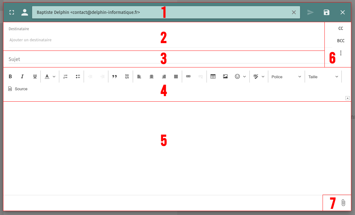 - enregistrer : permet d'enregistrer le mail dans les brouillons.